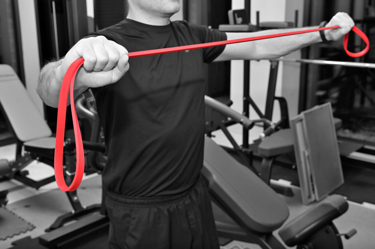 Jeszcze jedną, ale bardzo ważną rzeczą związaną z ćwiczeniem z gumami jest mniejsza możliwość złapania kontuzji lub nadwyrężenia mięśnia. Mówię tutaj na podstawie również swoich obserwacji. Ćwicząc z gumą nie mamy od razu górnego pułapu „ciężaru- oporu”. Zaczyna się on w pewnym stopniu i robi coraz większy w trakcie rozciągania gumy. Ponadto łatwiej uniknąć błędu, który często jest wykonywany przez ćwiczących z hantlami przy opuszczaniu ciężaru. Nie należy tego robić to w sposób swobodny, ale kontrolowany, w odpowiednim tempie. Również pamiętajmy o tym ćwicząc.